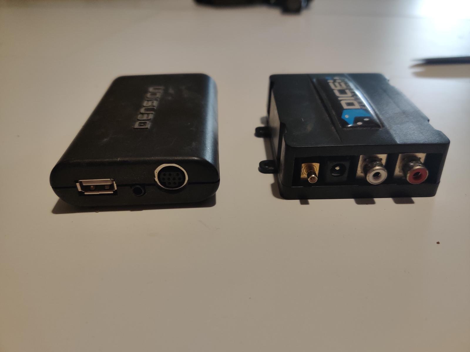 Myydään kuvissa olevat adapterit ja johdot. Näillä saa äänen esim. aux-johdon kautta ilman alkuperäisen mankan vaihtoa.