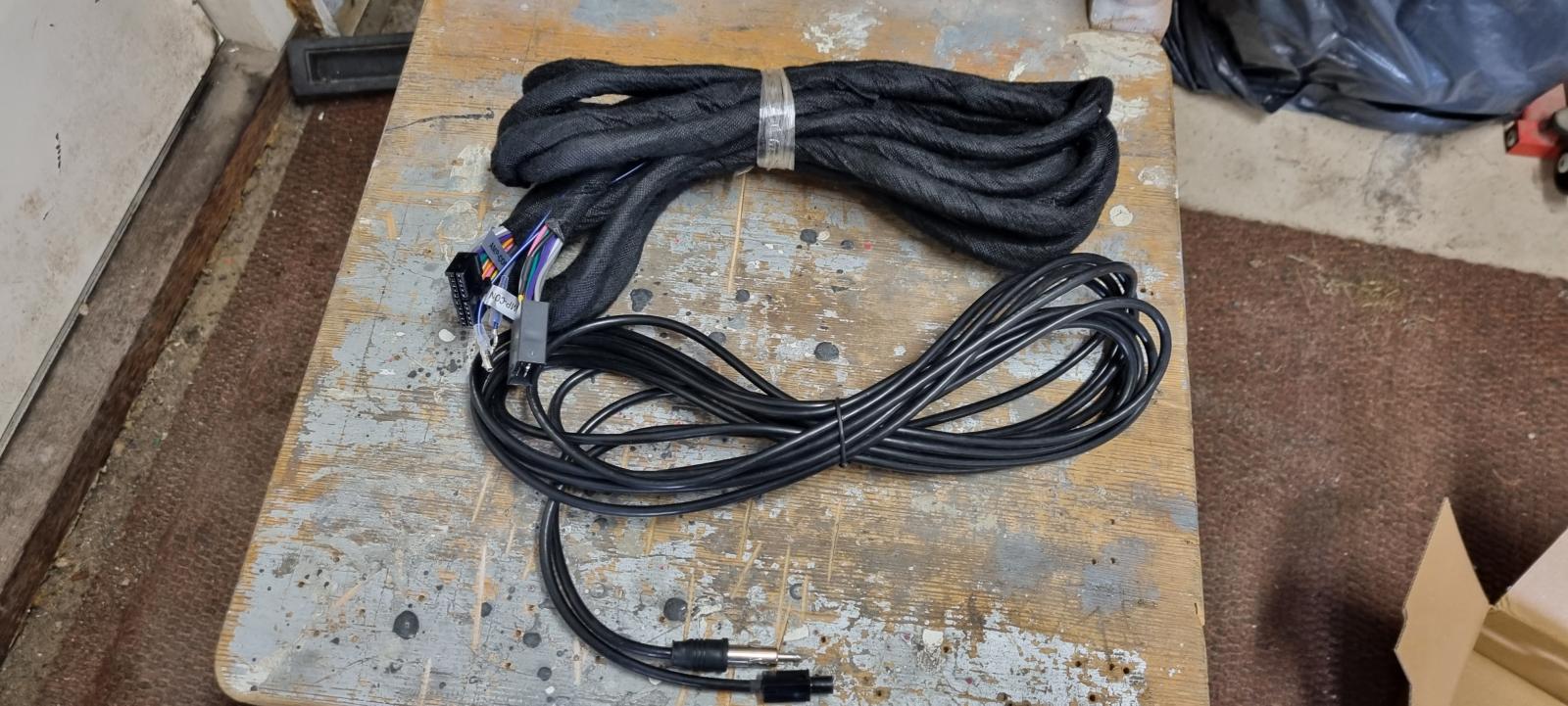 Kiinalaisen android soittimen kaapeli soittimen takaa takakonttiin sekä antennijohto, pituus n. 6m.