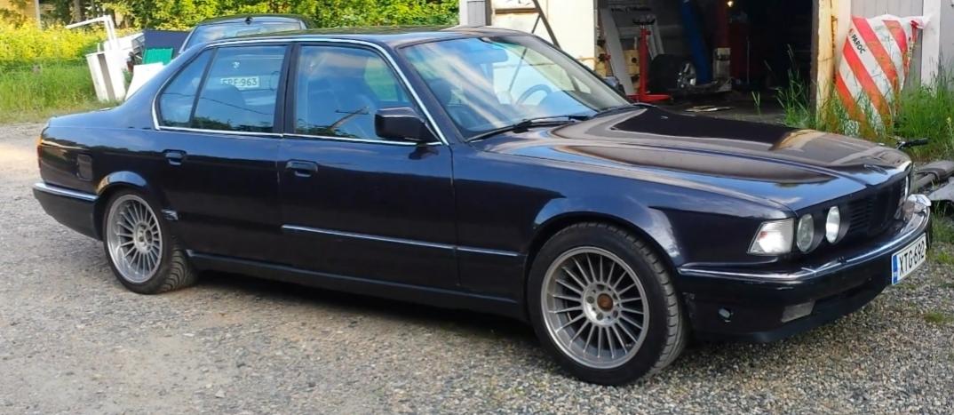 Alkuperäiset Alpinan vanteet ja takavanteet todella harvinaiset 17x10". Edessä 17x8,5". Talvirenkaat BMW hunajakennovanteilla.