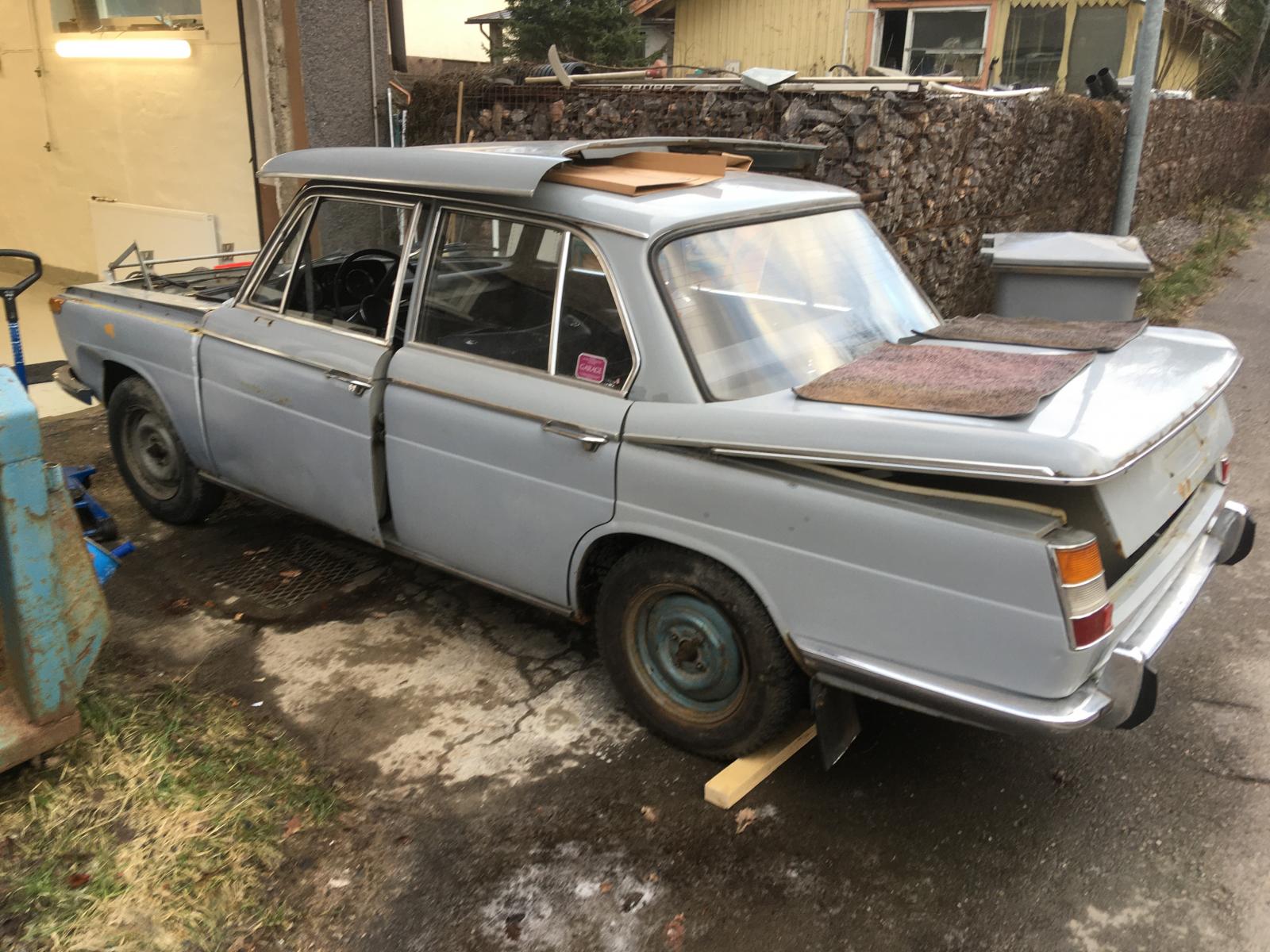Myydään koriltaan hyväkuntoinen Neue Klasse. Tekniikka purettu, auto grillissä (ei kuulu kauppaan). Todella ehjä auto, keulassa vähän hitsattavaa ja etulokasuojat huonot, vaihdettu joskus toisesta autosta.