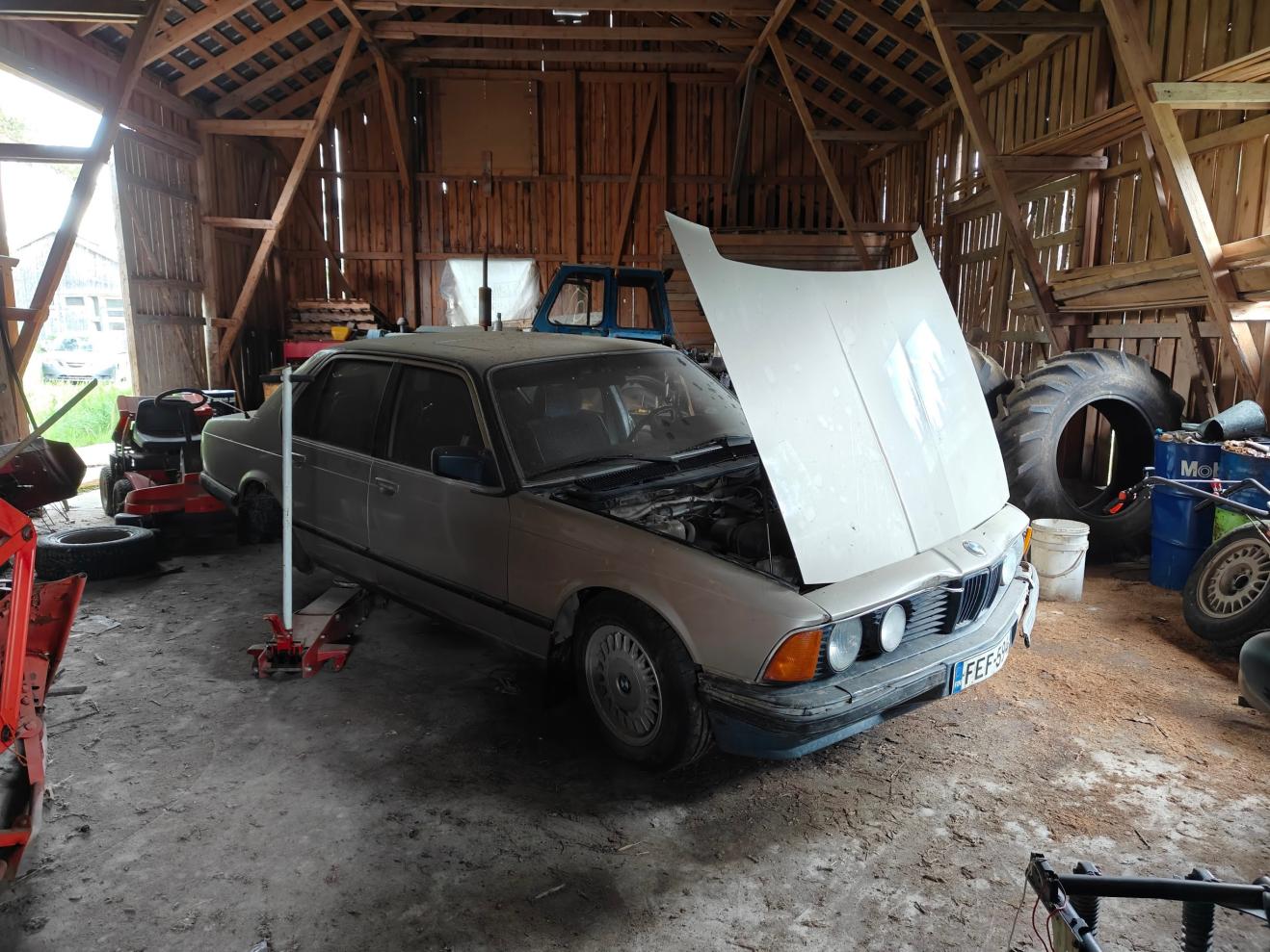 Väistämätön tapahtui, ja suvun monitoimimies ja koneasiantuntija heitti taistelun jälkeen lusikan nurkkaan. Mies ajoi vuosia vannoutuneesti kunnostamallaan Bemarin seiskasarjalaisella. Lopulta auto ei mennyt ruosteisten jarrujen takia katsastuksesta läpi (noin vuosi 2017), ja omistajallaan ei ollut enää riittävästi voimia saattaa projektia maaliin. BMW jäi ns. telakalle, ja siinä se on, onneksi säältä suojassa, saanut olla tähän päivään asti. Nyt auto on siirtynyt perikunnan yhteisymmärryksessä minun vastuulleni, ja mielelläni sille löytäisin jonkun näihin autoihin vihkiintyneen, joka haluaisi säästää palan suomalaissaksalaista autoiluhistoriaa. Autolla on ajettu noin 280 tuhatta kilometriä.