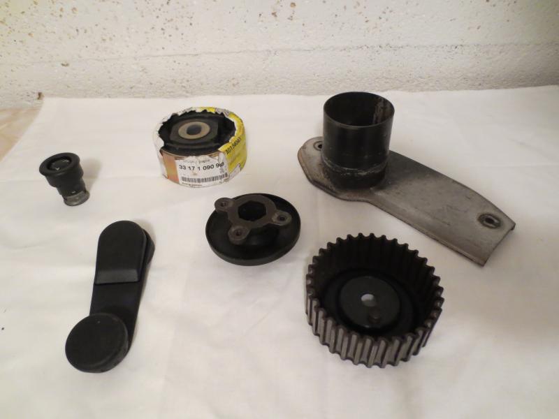 - M20 koneesta jakopään osia ( virranjakajan jalka, hihnapyörä)