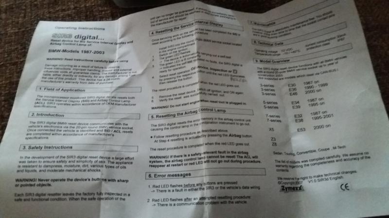 Myydään huoltovalon nollaaja