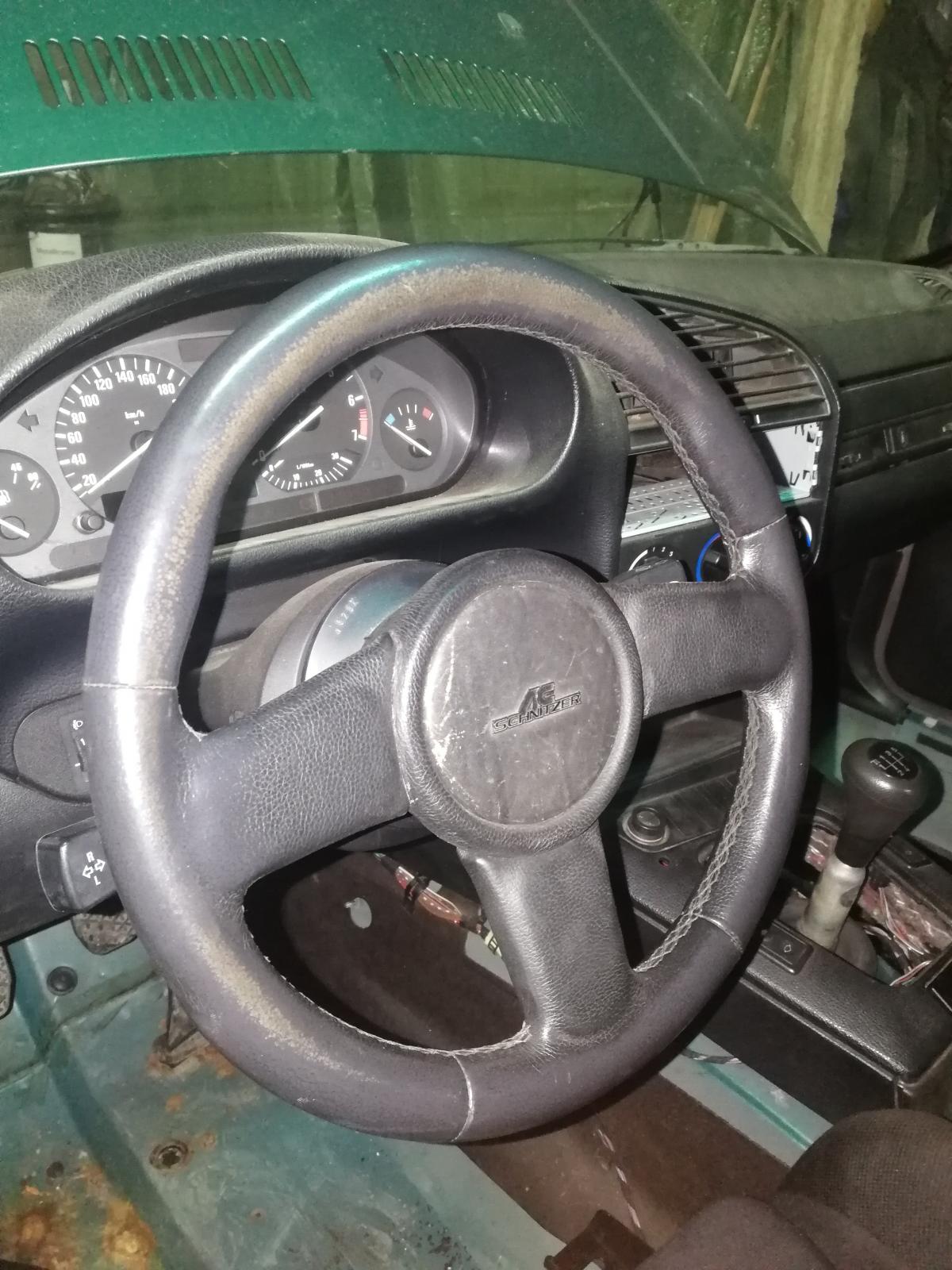 Bägitön ratti pultti kiinnityksellä. Nahka ehjä, mutta kulunut.