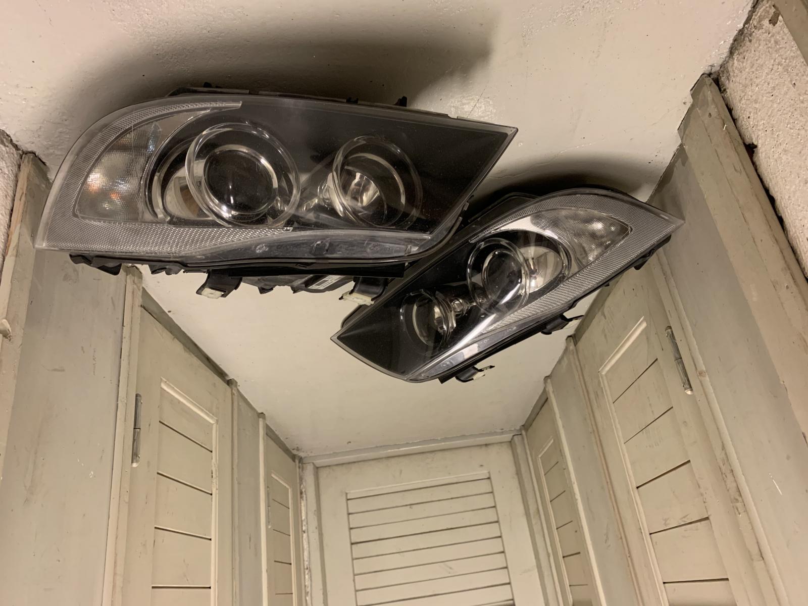 Umpioista purettu korkeudensäätömoottorit ja ballastit, pitkissä h7 ja enkeleissä 20w ledit kiinni.