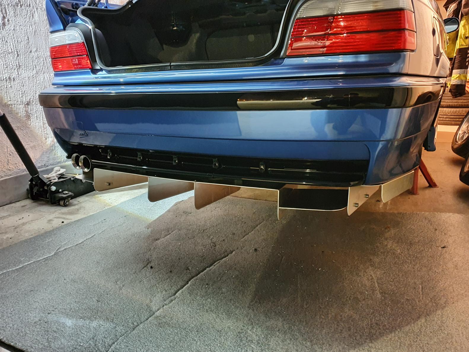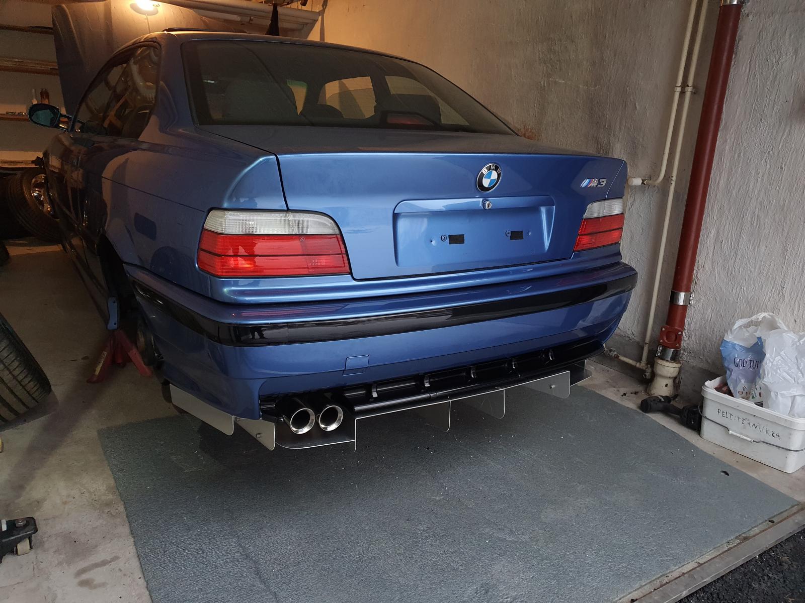Sopivuus E36 M takapuskurin kanssa alkuperäisen diffuusorin alapuolelle.