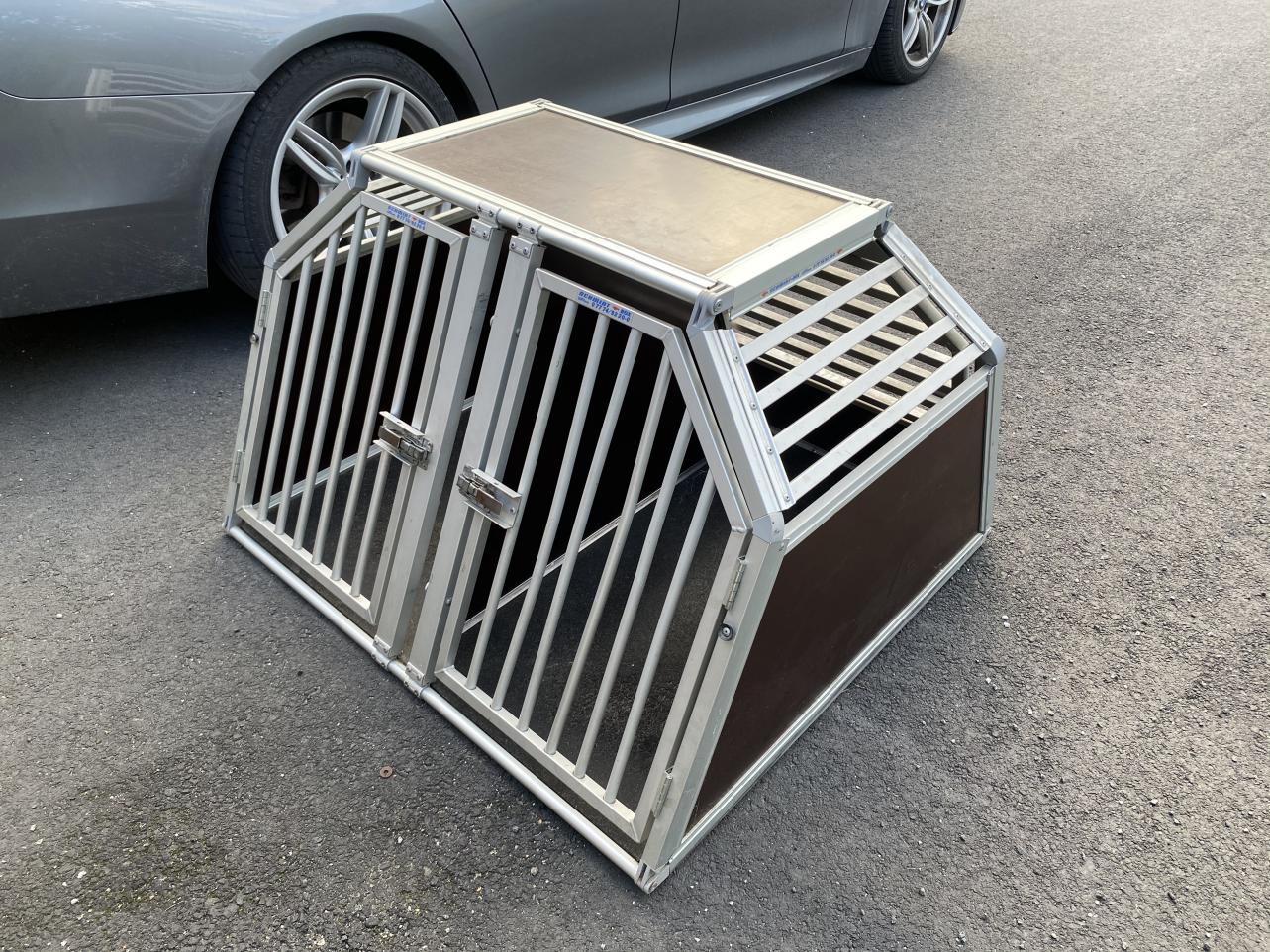 Alumiinirunko, jaettavissa irroitettavalla väliseinällä kahteen osaan. Kahdelle koiralle tai esim. niin että koira toisessa ja tavarat toisessa osassa.