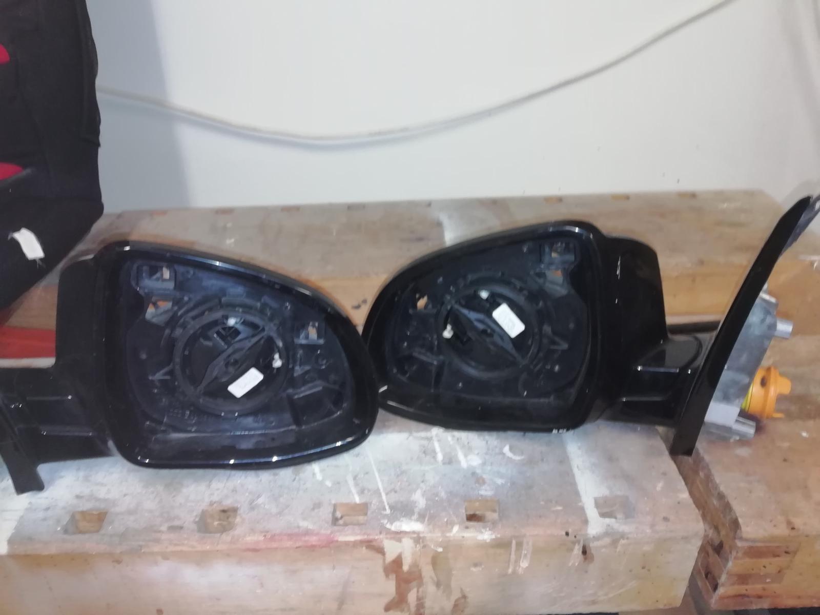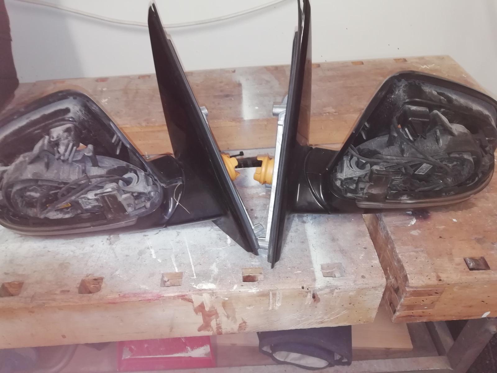 BMW X5 F15 (2016) ulkopeilien rungot, Muuten toimivat, mutta peililasit puuttuu. Ystävälliset Latvialaiset tarvitsivat laseja. Johtojen päät näkyvissä