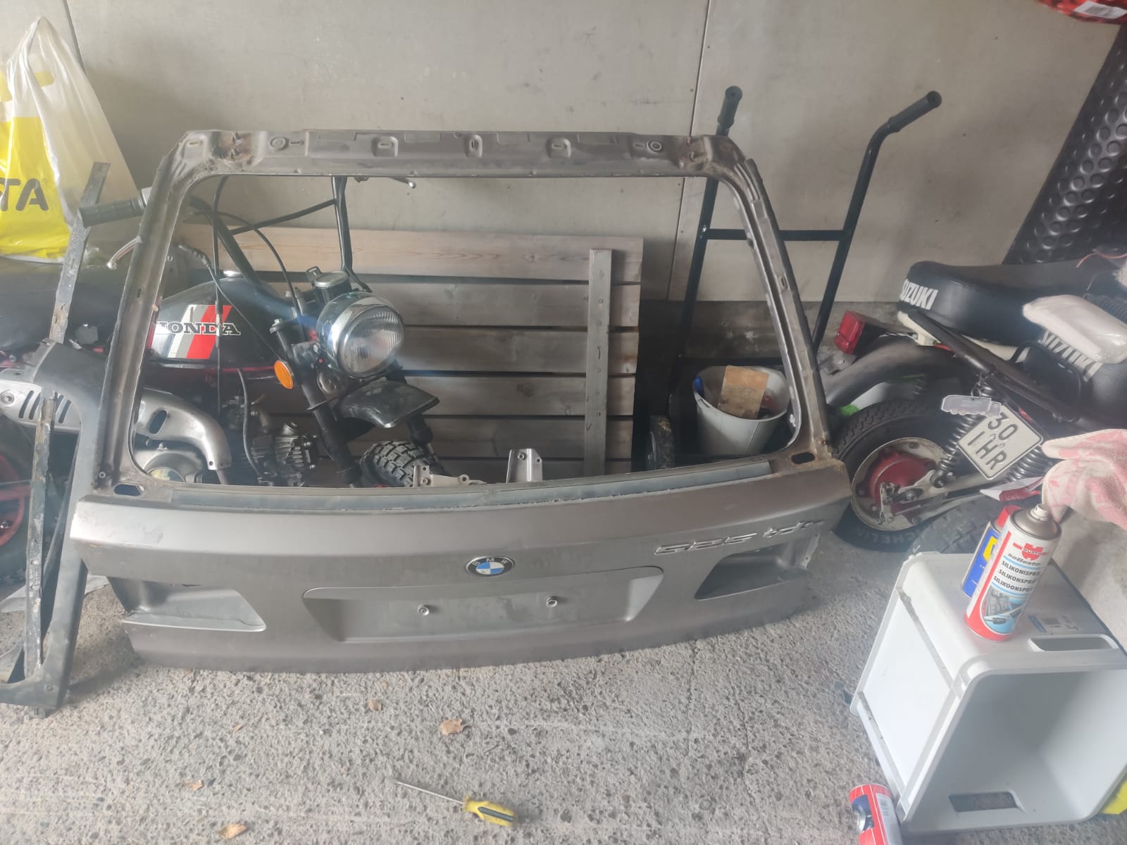 Pelastettavissa oleva takakontinluukku+lasi, jäi ylimääräiseksi kun löysin omaani samaa värikoodia olevan toisen luukun.