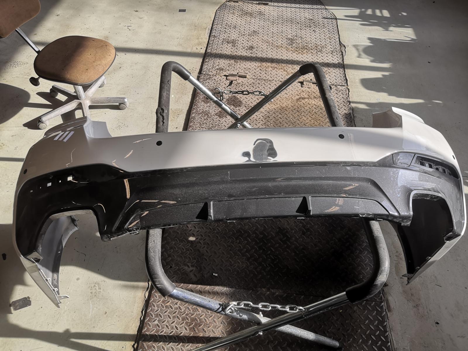 Elikkäs jäi tämmöinen kolari autosta. Puskurissa oli pieni reikä joka on muovikorjattu näkyy kuvissa. Sisältää myös puskurin alaosan. Vaatii maalauksen. Heijastimet ja tutkat+johtosarja puuttuu.