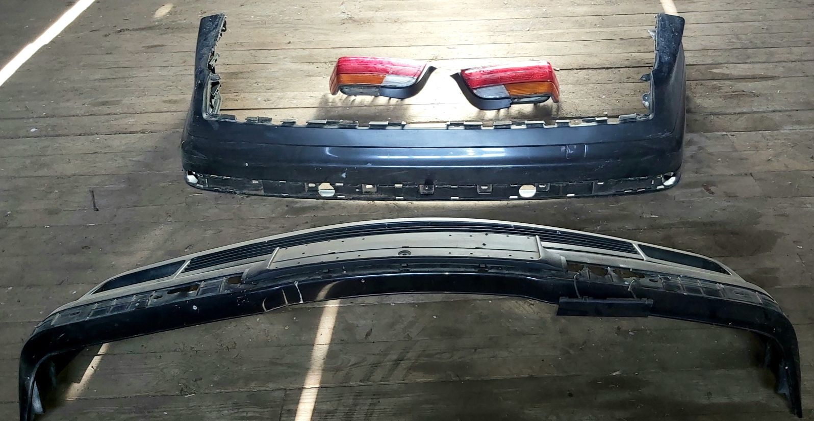 E36 Coupe etu- ja takapuskuri, oikea takavaloumpio ja oranssit kylkivilkut