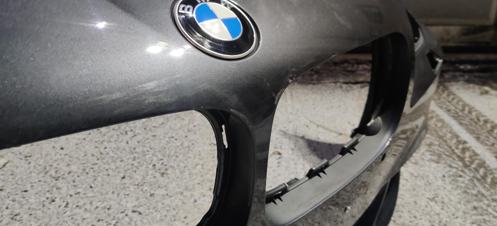 Puskurissa munuaisten ja keulamerkin välissä naarmut eli vaatii siis pikku maalaustyön jos haluaa siistin. Tästä edullisesti kunnon puskuri haljenneen tarvikkeen tilalle.