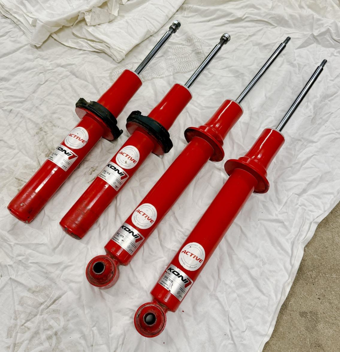 Myytävänä vain hetken aikaa käytössä olleet Konin huippuvaimentajat. Näillä saat G30:n luontaisen löysään vakioalustaan jämäkkyyttä ja mukavuutta samassa paketissa. Ovat huomattavasti paremmat ajossa kuin löysät vakiopumput! Auto meni vaihtoon yllättäen, melkein samantien kun sain nämä alle. Joten pelastin nämä pois autosta ennen myyntiä.