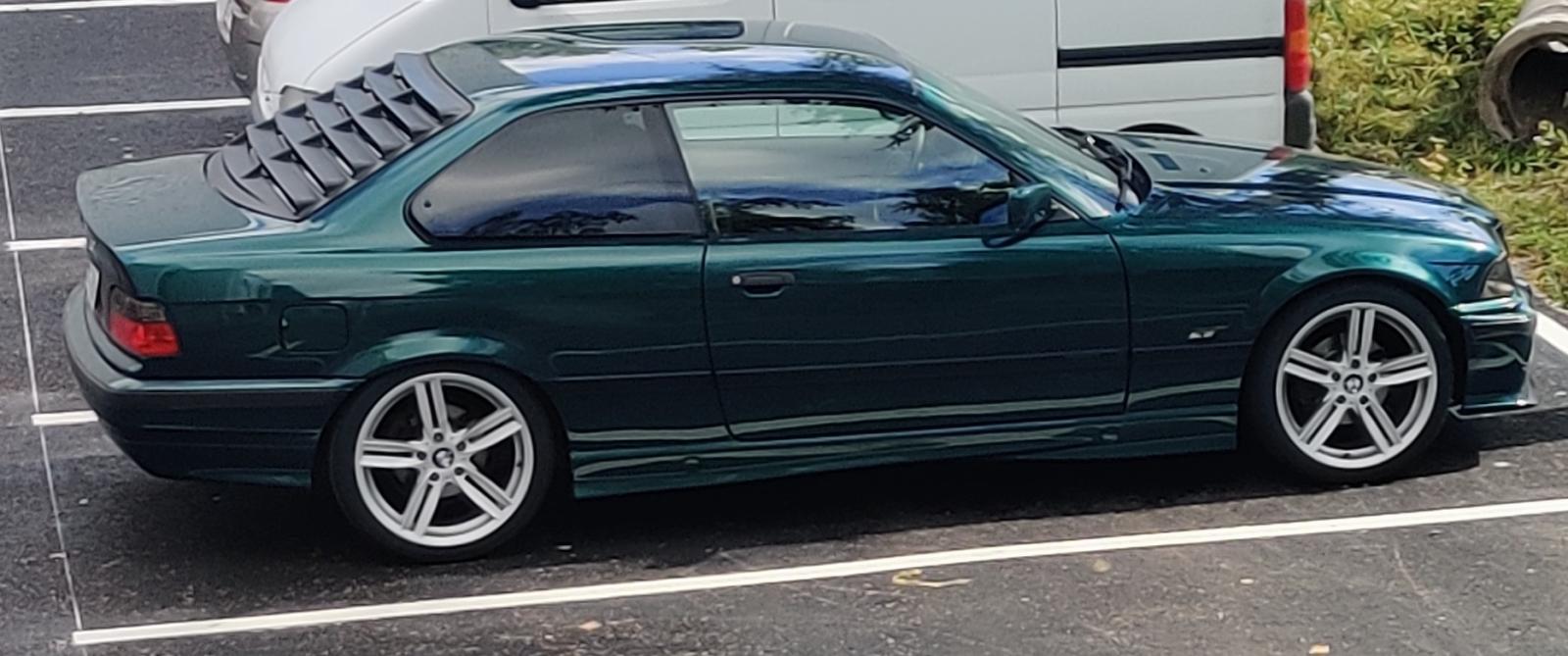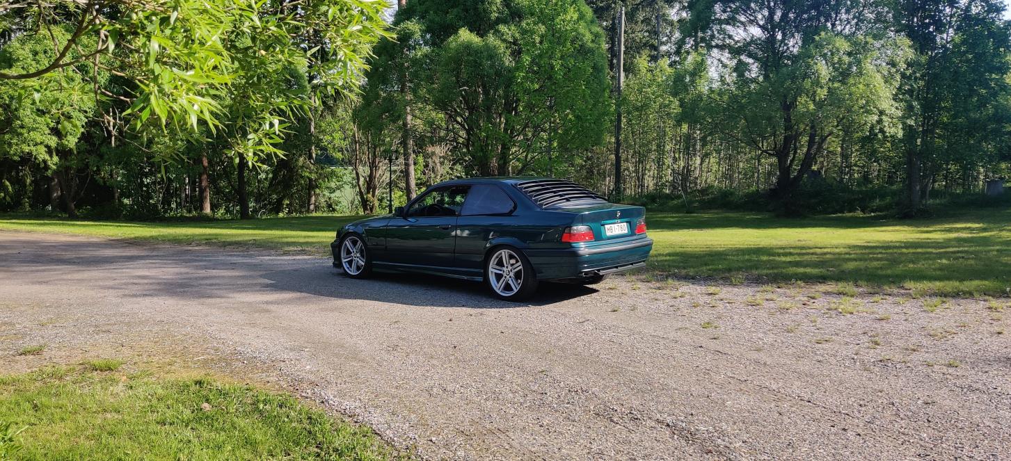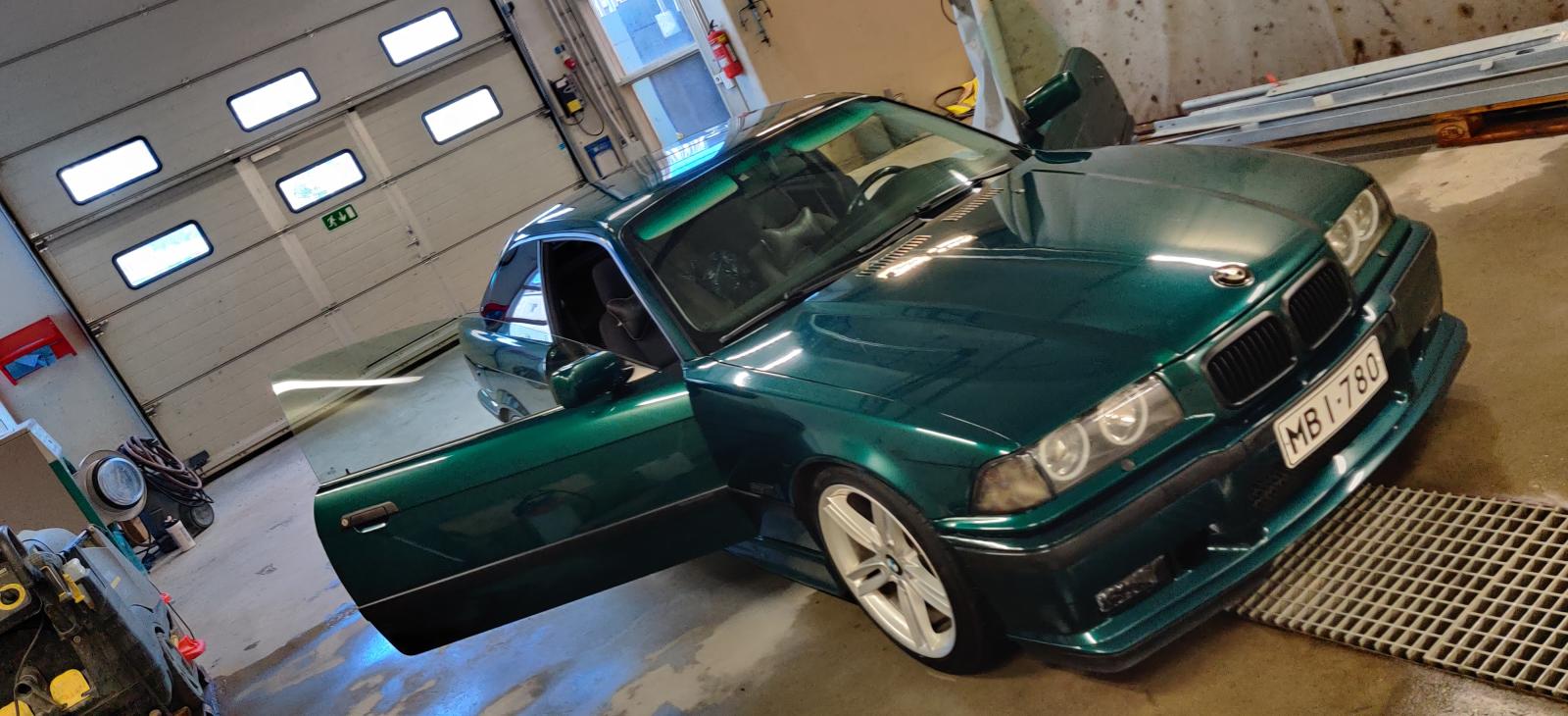 BMW e36 coupe 325 ia vm. 1994 Heinkäkuu. Boston Green. Alkuperäisen ostajan paperit tallella. Suomihistoria hieman epäselvä. Pelastin m-merkki jonnelta. Oma vanha ajettiin lunariin suoralla tiellä niin piti laastariksi hommata.