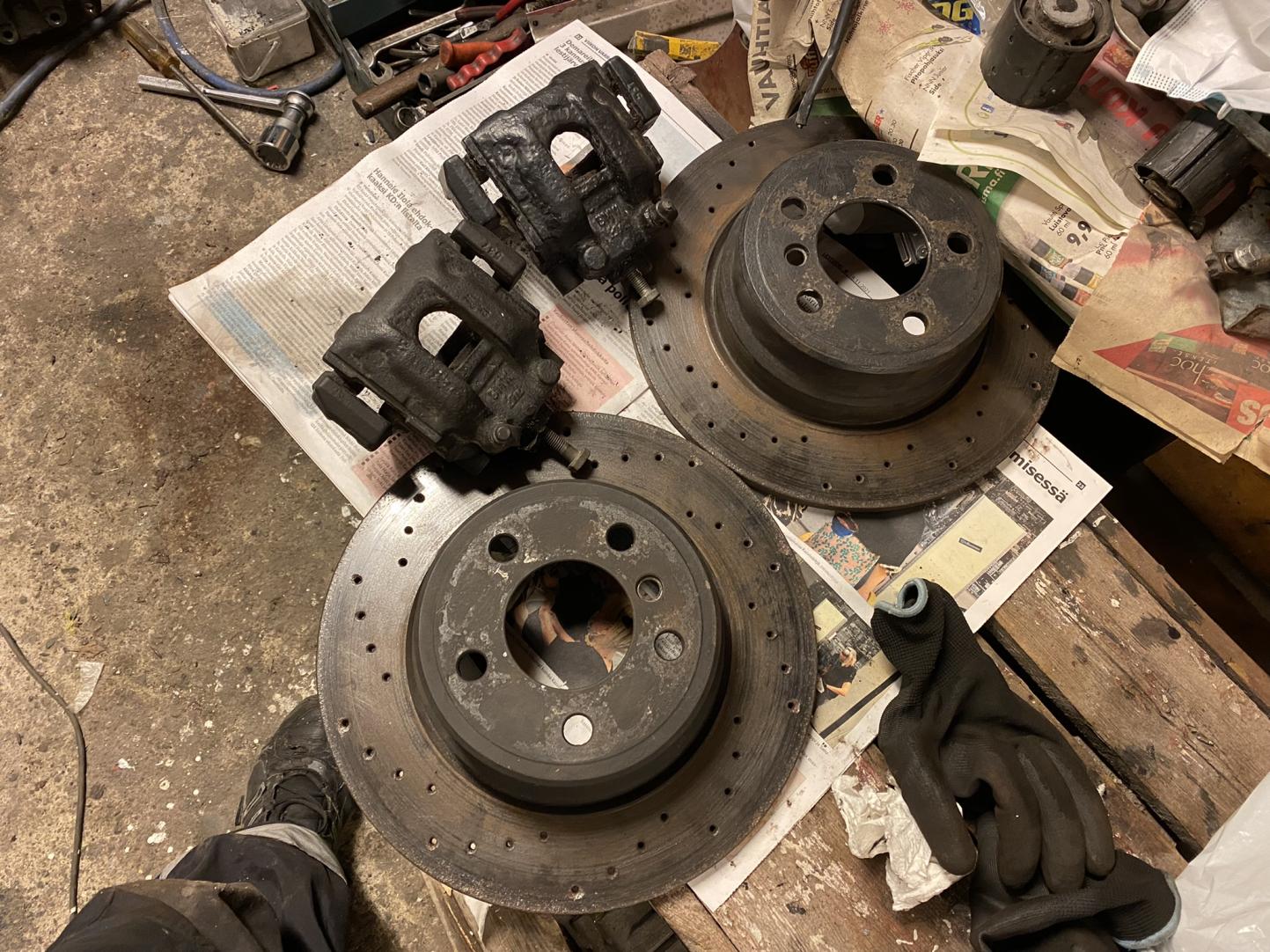 E53 X5 takajarrulevyt ja uudenveroiset palat, rei'itetyt levyt 324X12 34216859678 h. 40e (kuva)