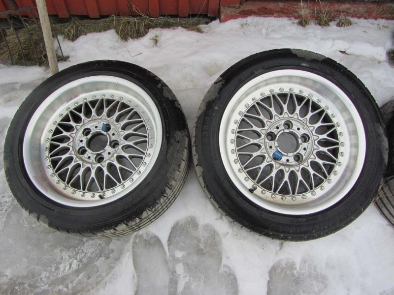 E39:stä 5kpl vanteita otsikon mukaisia vanteita muovikeskiökupeilla. Renkaat 4:ssä sportcontact3:set joissa pintaa 3,3,3,2mm. 1: sportcontact2, ajamaton, ollut vararenkaana. vanteissa ei kanttariosumia, suorat jne. suurin kraapu rengasvaihtajien jäljiltä yhdessä, samoin keskiökupin kohdistusnuolen kohdilla kun törkitty ruuvimeisselillä kuppeja irti. Kuvista näkee tarkemmin.