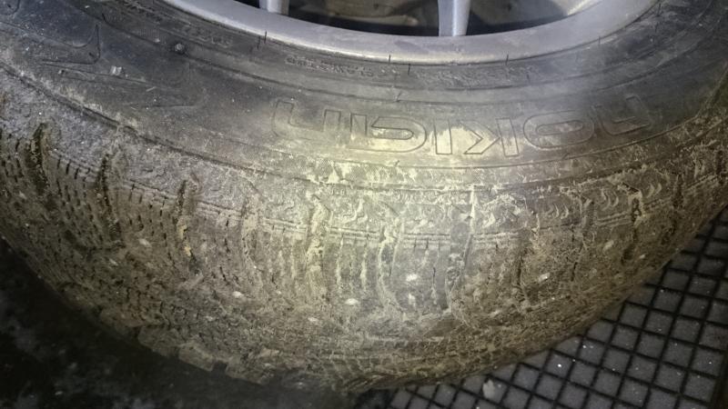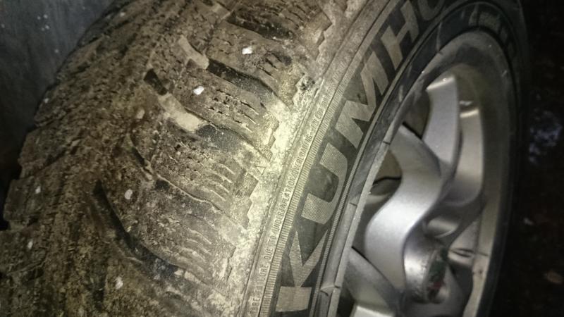 Renkaista kaksi on Kumhon i`zen kw22. Koko 225/55R16 ja pintaa 6-7mm toiset kaksi on Nokian hakkapeliitta 5. Koko 205/60R16 ja pintaa 7-8mm