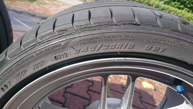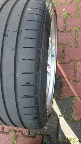 Kahdessa sisäreunat hieman kuluneemmat kun pyörän kulmat olleet pielessä. Kahdessa jälkiä että on osunut lokasuojan kaareen.