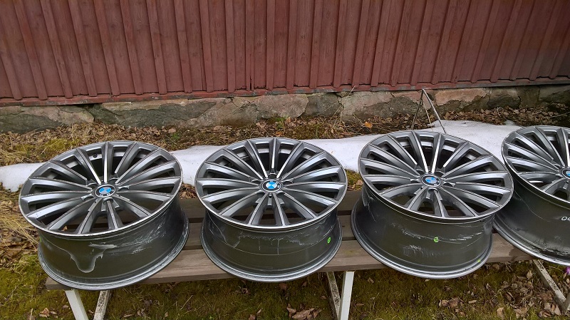 Toista takavannetta oli hitsailtu (ja huonosti), siksi siis vain kolme vannetta myynnissä, neljännestä tuli kela puutarhaletkulle...