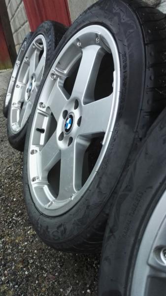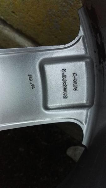 Myydään 1000Miglia A-SUV vanteet renkaineen 9,5x20t, pulttijako 5x120, ET 40, kk muistaakseni 74,1mm. Olleet sovitteilla Bmw X5 e53 (72,6).