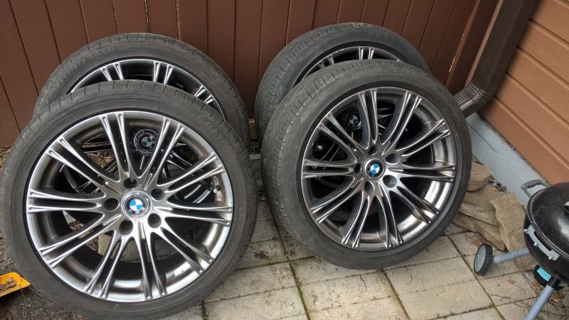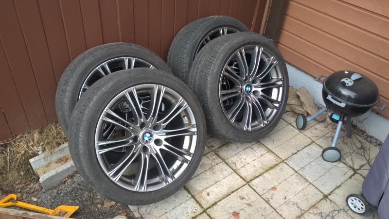 Erittäin siistissä kunnossa. Yhdessä vanteessa kosmeettinen kanttarijälki. Päällä 2kpl GY ja 2kpl Pirellin kesäpyöriä kokoa 245/40-18. Pintaa ainakin kesäksi. Hyvät ajaa. Olleet E61 alla.