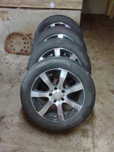 Pulttijako 5x120. Michelin 225/55 kesärenkaat joissa 3-4mm pintaa päällä. Naarmuja on. Keskireikä passaa ainakin e38:iin. Pulkkilasta Pohjois-pohjanmaalta löytyy. Hinta 170€. p.0443608807
