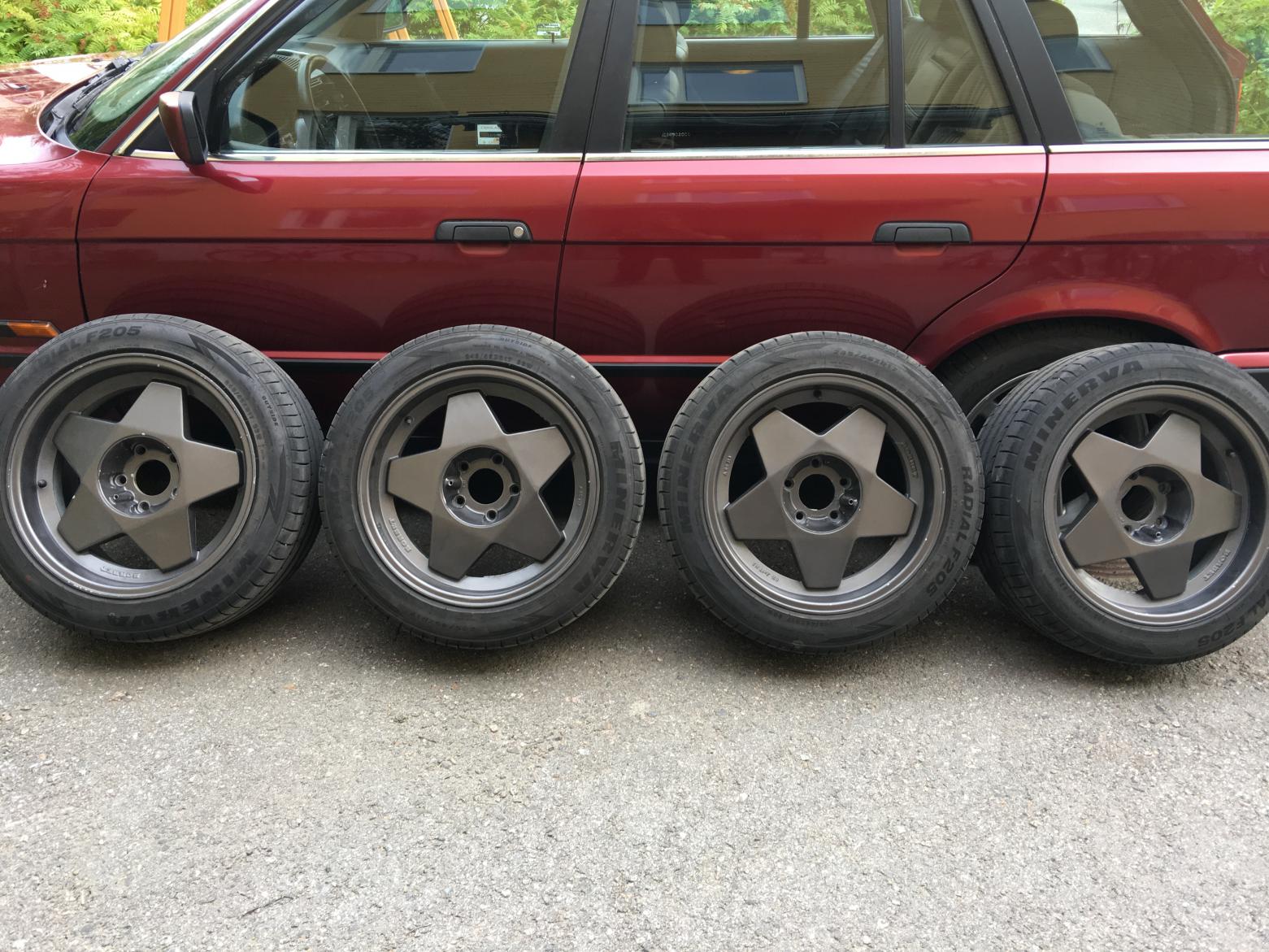 Maalattu ja lakattu julkisivut, ei näyttelykuntoiset. Keskilätkiä ei ole. Kumeilla tankillinen ajettu, ilman renkaita 300e. E34 istuu kivasti ilman lättyjä. Joensuun keskustassa ja jonkun matkaa voin vaikka tuodakin.