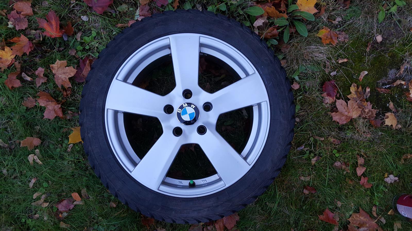 Renkaat lähes uudenveroiset, tasaisesti kuluneet, ajettu yksi talvi Etelä Ruotsissa, eli n.3 kuukautta. Vanteet myös uudenveroiset, ei kanttikivi osumia. Hienot, elegantit ja hopeiset vanteet joihin sopii esim. BMW keskiömerkki.