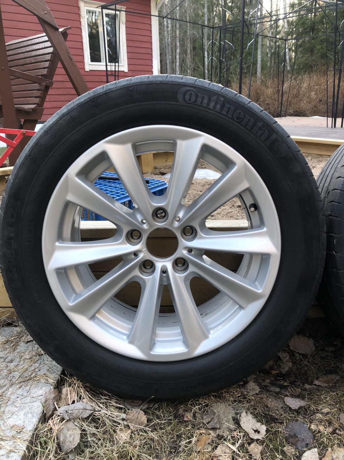 Myydään BMW:n alkuperäinen vannesarja Continental ContiPremiumContact2 renkailla. Yhdessä vanteessa muutama pikkurillin kynnen kokoinen osumua (näkyy kuvissa). Renkaissa seuraavasti pintaa jäljellä: