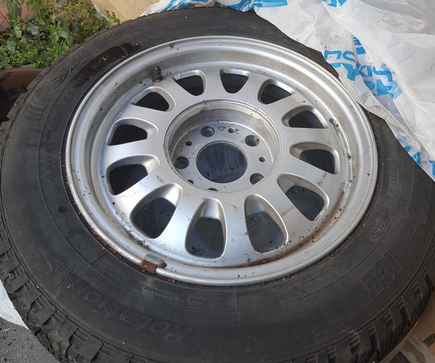 Kuvan mukaiset vanteet ja renkaat Sava 205/65/15, on niissä nastoja ja pintaa muttei mitkään helmet ole. Vanteet suorat ja tasapainoitettu noille renkaille, puhdistusta vaativat. Keskikupit ovat ikävä kyllä menneet hukkaan. Vain nouto. Hp. 100€ koko kasasta tai kelvollinen tarjous. Jyväskylässä majailevat nämä.