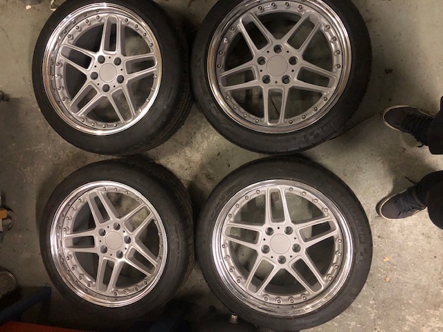 Vanteet kunnostettu Rimfixillä ja sen jälkeen niillä ei ole ajettu metriäkään. Reunat on kiillotettu ja keskiöt maalattu. Sarja on säilytetty pimeässä tallissa.