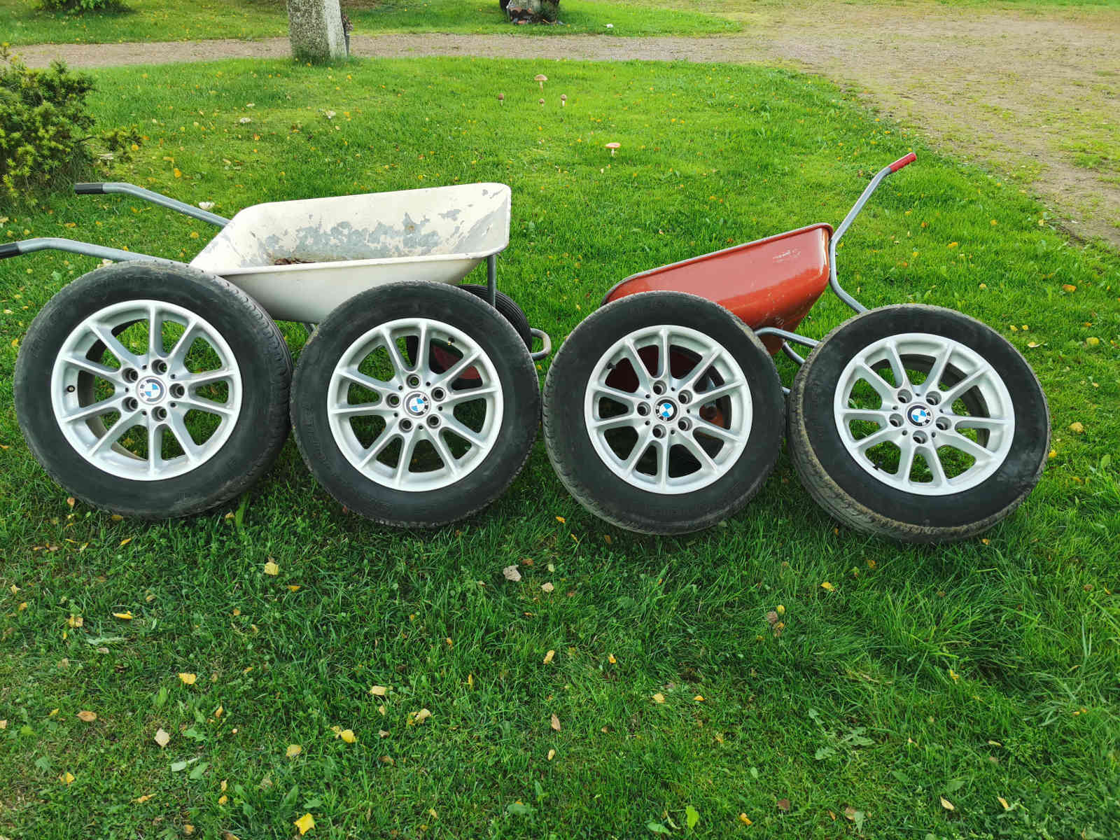 Myydään 7Jx16-kokoiset style 50 hyväkuntoiset vanteet. Goodrichin ok-kuntoiset kesärenkaat. Alunperin E39-autoon tehty (5x120, 74.1mm, ET20). Mukaan sovitepalat joilla menee E34/E32. Ei kanttausarpia mutta yhdessä vanteessa näkyy naarmuja.