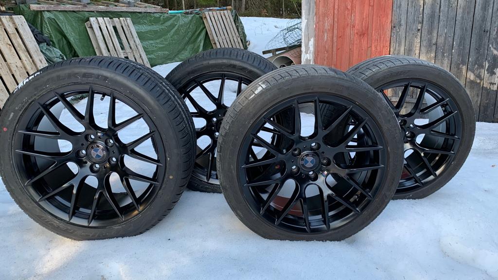 Myyntiin auton vaihdon takia pari vuotta vanhat 19" Ström vanteet renkaineen. Renkaat olleet 2011 F11 alla. specseiltään 19x9 ET35 ja 19x10 ET35. Renkaina on Falkenin Azenis FK510. Takarenkaat aivan uudet (ajamattomat) 295/35R19 ja eturenkailla ajaa kesän 255/40R19. Vanteet ovat suorat, ei kanttari ihottumaa.