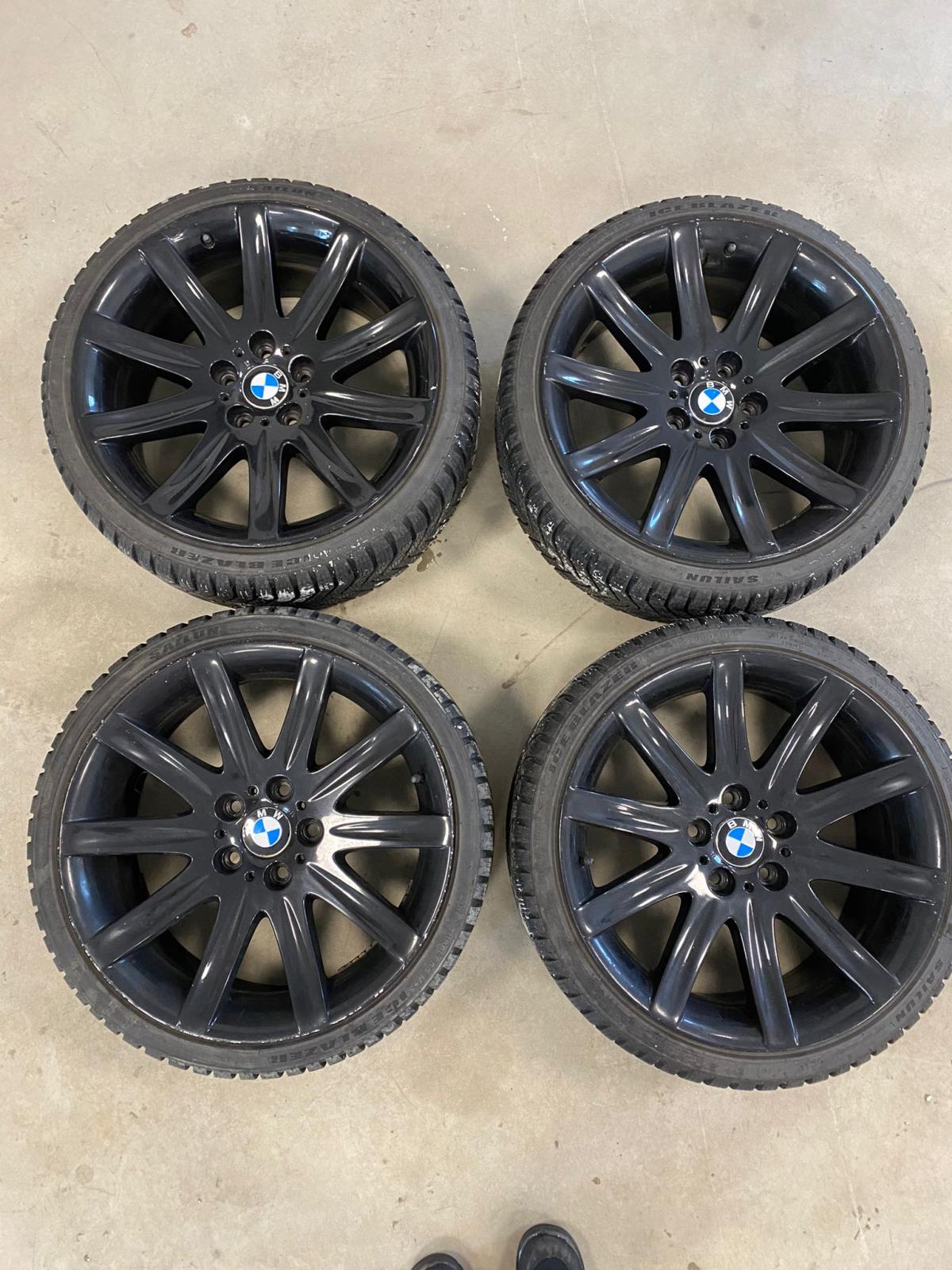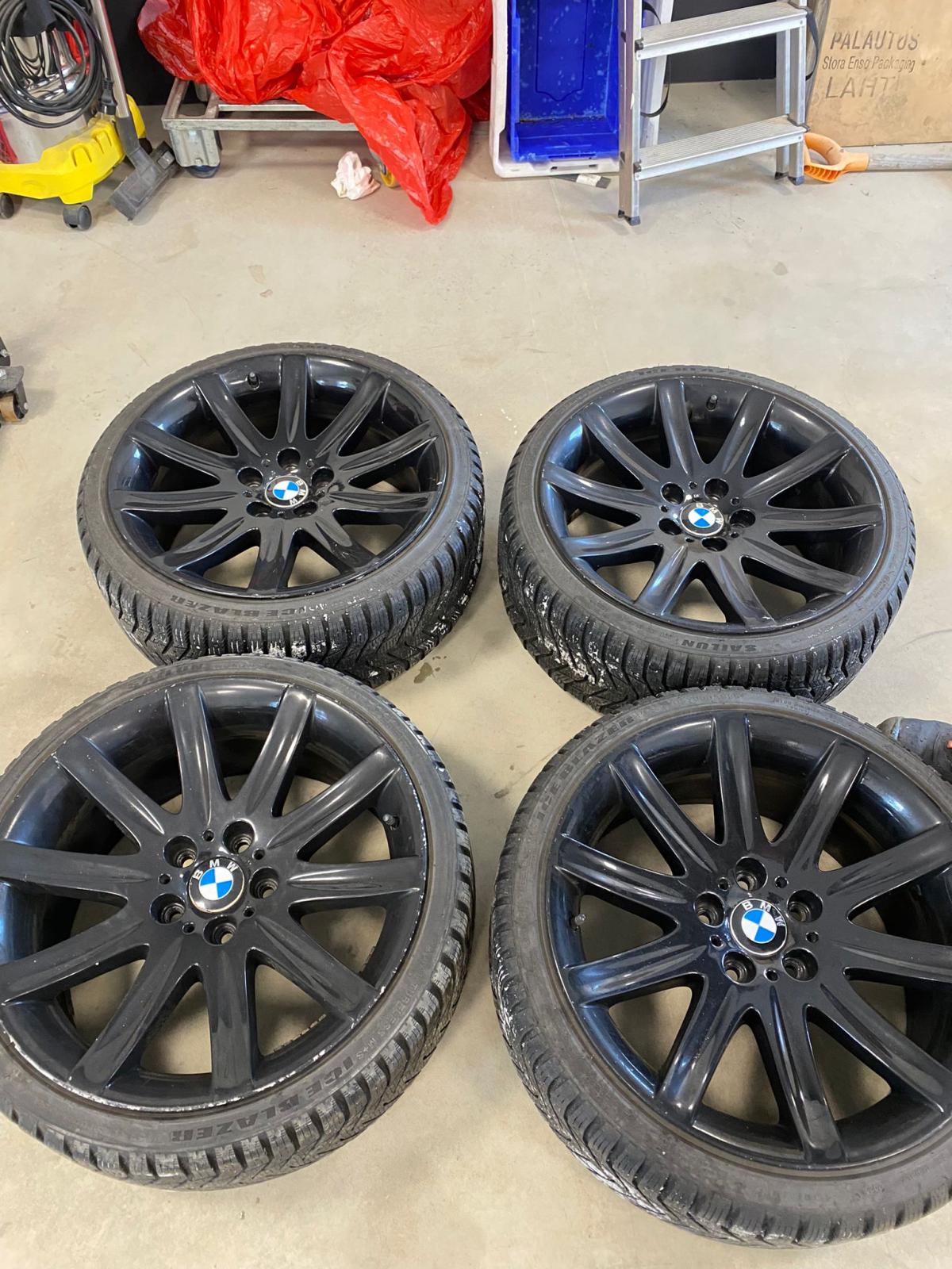 Tästä bemariisi vanteet. Yhdessä vanteessa pari halkeama jotka pitäisi korjata ennen käyttöä (kuvassa ympyröity). Muuten vanteet ovat ehjät, käytön jälkeä toki löytyy. Renkaina nastattomat sailunin laatu renkaat 235/35 joissa vielä pintaa ainakin alkukesän ajeluihin. Olleet E91x alla. Lähetys onnistuu myös lisähintaan. Vanteet Kuopiossa. Hintaa 400€/tarjous 0407seiska55kuusi7yksi