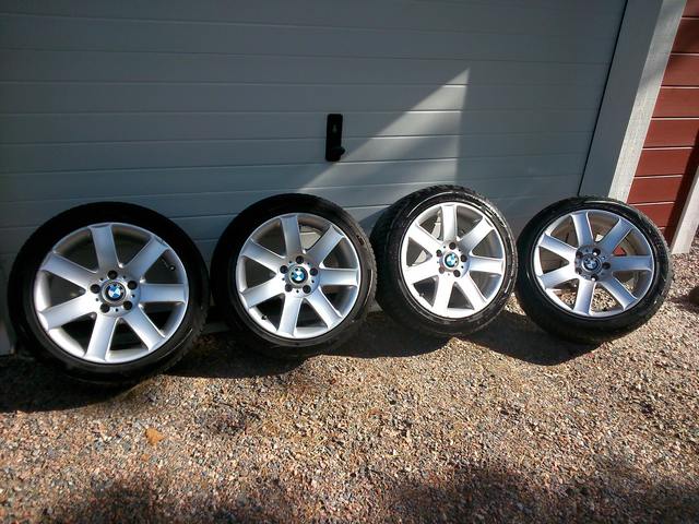 Alkuperäiset E46 vanteet (ET47) ja päällä kesäkuussa ostetut Nokian nordman SX kumit.