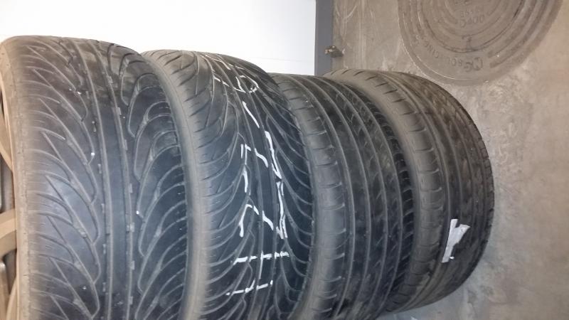 8,5x19 ja 9,5x19 vanteet ok kuntoisilla kumeilla. Eturenkaat vähän heikommat, kun kuluivat simpukan väljyydestä johtuen. Takakumit hyvät. Edessä 235/35R19 ja takana 265/30R19 ovat olleet alla e34 et luku vanteissa on 14