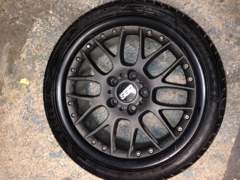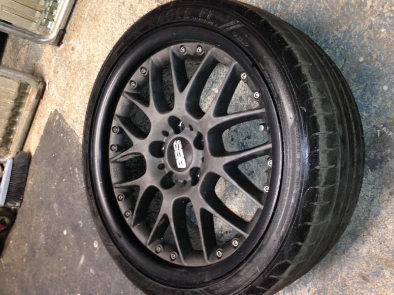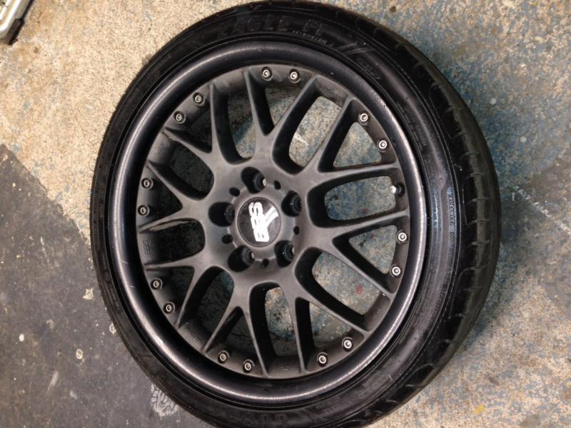 BBS 2-osaset vanteet 18t 225/40 ja 245/35 renkailla. Renkaat hyväkuntoiset, olleet 120d:ssä. Kehät ja puolat pulverimaalattu. et38 muistaakseni, 8,5" leveet kaikki. Vanteet on siis 18 tuumaset eikä 17 niin ku aikasemmin ilmoitin. Varastossa liikaa vanteita, niin tuli väärien speksit.