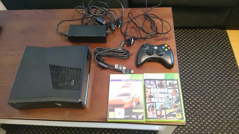 Eli vähän käytetty musta xbox 360 slim 250gb + ohjain + play&charge kit + HDMI kaapeli + Forza 4 ja GTA5. Konsolilla pelattu ainoastaan kyseiset pelit kerran läpi, joten siisti kuntoinen paketti. Myydään tarpeettomana. H.100€. Nouto tai postitus onnistuu myös.