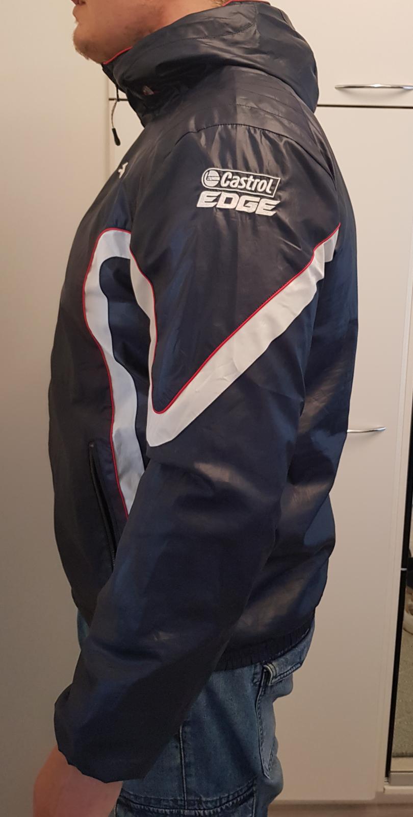 Myytävänä käytännössä käyttämätön Puman BMW Motorsport tuulitakki. Ollut varastossa n. 5-8 vuotta, lähes uudesta asti. Hihoissa Castrol Edge brodeeraukset, selässä "BMW Motorsport" sekä "Powered by BMW M". Etupuolella Puman ja BMW:n logot. Väri tumman sininen.