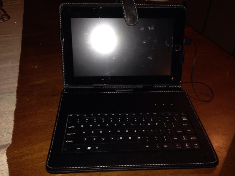 Android käyttis ja kosketusnäyttö. Mukaan lisä näppis ja nahkainen kotelo! Akku kestää noin 30 min.