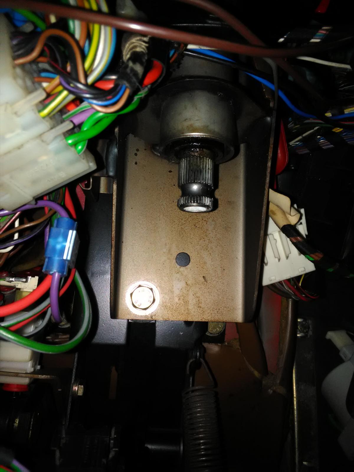 minun autossa ilmeisesti siis tuo column tube katkastu yläpäästä niin että laakeri näkyy siinä suoraan. ei oo ihme ettei ohjaus oikee häävi ole ollutkaan