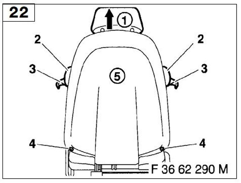 Ongelmana on nyt että pitäisi saada penkin takaosa irti, mieluiten irrottamatta penkkejä, sillä se kuulemma on mahdollista. En vain itse ole huomannut penkin alla olevia ruuveja joita kuvan ohjeessa näytetään (numero 4). Ohje on ilmeisesti 1998 e36 compactista, muuta tästä aiheesta en millään löytänyt.