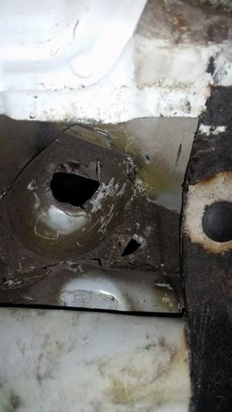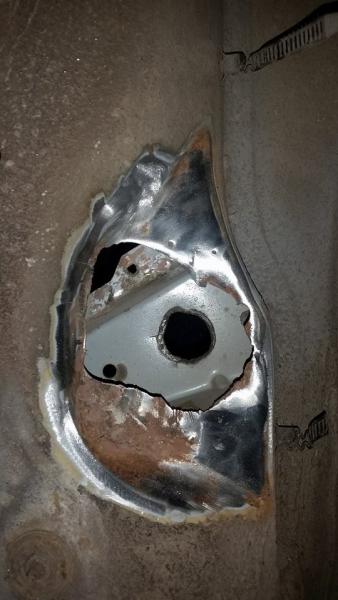 Nostellaas vanhaa topikkia, kun itellä tuli huomattua että perähän on aivan irti... Entinen omistaja oli yrittäny vissiinki korjata tai peittää noi aukot korissa 6mm rautapaloilla ja sikaflexillä