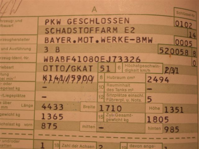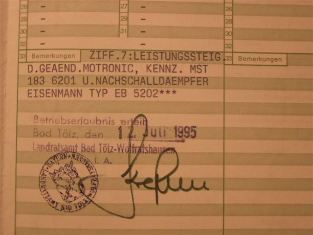 Autossa on saksan brief ja paikallinen rek.viranomainen muuttanut tehot ym. seuraavasti;