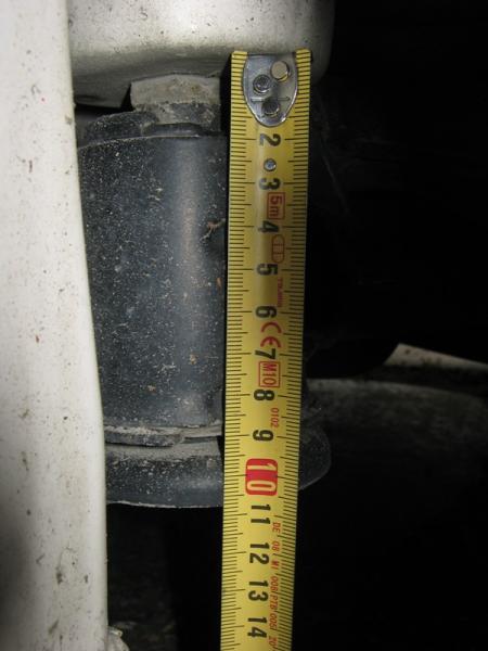 Seuraavaksi aion purkaa pois apurungon alta ne koriin kiinni tulevat lätkät ja koitan, meneekö holkki alareunaa syvemmälle puslan sisälle. Jos menee niin luulen, että siitä se ongelma löytyi. Mittaan samalla apurungon etäisyydet koriin nähden molemmilta puolilta. Mun mielestä se hattu jäi niin korkeaksi tuossa puslassa, että holkki ei ota kiinni pinnapultin pohjaan. Vähän oudon mallinen toi strong flexin ratkaisu muutenkin verrattuna kilpailevien tuotteiden suunnitteluun... Perän kannattimen puslakin on uusi ja powerflex merkkinen. Kaiken järjen mukaan toi ei voi tuolla liikkua mihinkään, mutta kova isku saa kyllä kulmat sekaisin. Lisäksi mitään näistä vaivoista ei ollut ennen akseliston remonttia. Camberit silmämääräisesti ok ja tuntui hyvältä ajaa pientä vetelyyttä lukuun ottamatta.