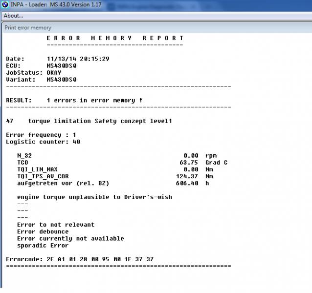 Vikakoodin luku antoi 47 - Torque limitation safety conzept level1, joka ei ainakaan minulle anna mitään vinkkiä, eikä netistäkään pahemmin mitään löydy. Olisiko kellään mitään hajua mistä lähteä liikkeelle?