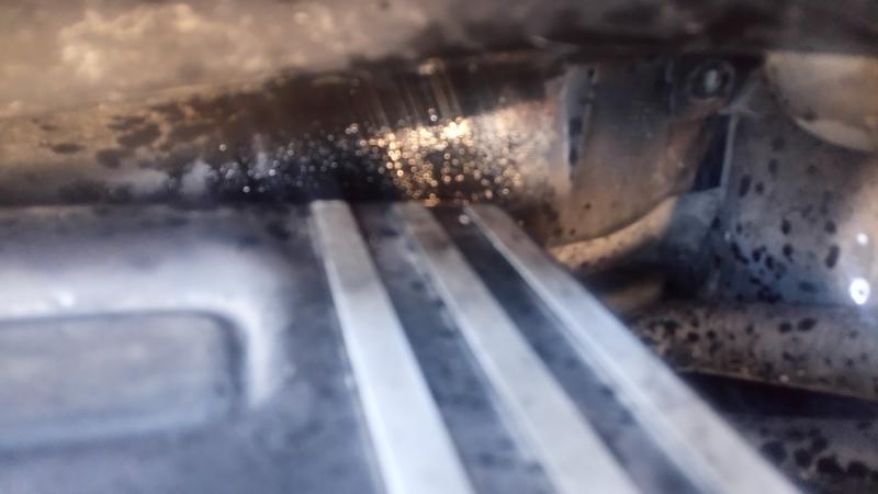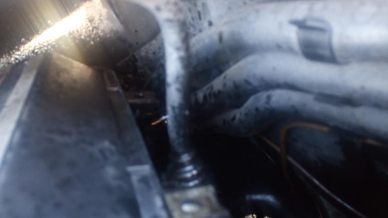 Edestä katsottuna kuskinpuolen yläkulma tulipellistä vähän öljyssä. Nyt ei jaksa pyörittää moottoria ku kierroksen tai kaks. Mitään kilinää tai kolinaa ei kuulu moottorista kuitenkaan. Öljyä koneessa edelleen.