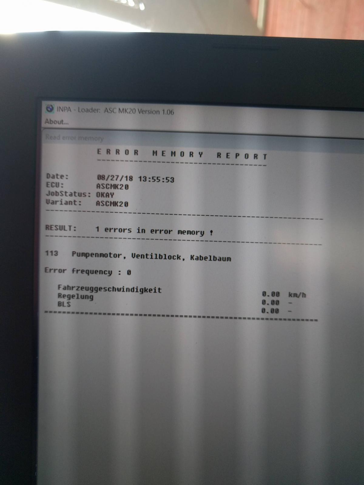 Elikkäs vaihdettu jo oikee etu ja vasen takasensori, josta inpa herjas. Nytten kun nollasi niin lykkää tälläistä "113 Pump unit, valves, wiring harness" mutta inpassa lukee error frequency: 0. Kokeilin sitten inpan abs testiä (12s jarruttaa 80%) mutta en millään saanut sitäkään toimimaan, paitsi kerran potkaisi hieman takaisin. Tyhmänä kysyn siis että onko tämä selkeä pumpunvika vai onko näissä jotain kikkaa jolla sen saisi toimimaan? Ohessa kuva mitä inpa näyttää