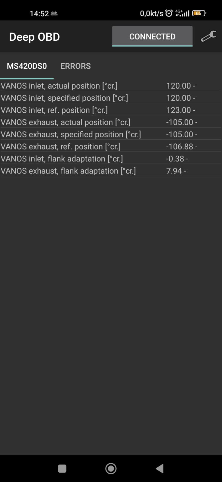 Data näyttää pako ref. 103.13 . Actual / specified on 105 molemmat. Imu ref. 122.25 . Actual / specified 120 molemmat. Ei liiku arvot tyhjäkäynnillä,eikä kierroksilla. Voiko tästä nyt päätellä jotain?
