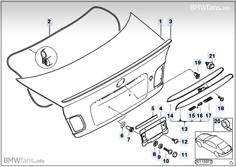 Takaluukku aukeaa avaimen napista, mutta ei takaluukun kahvasta.